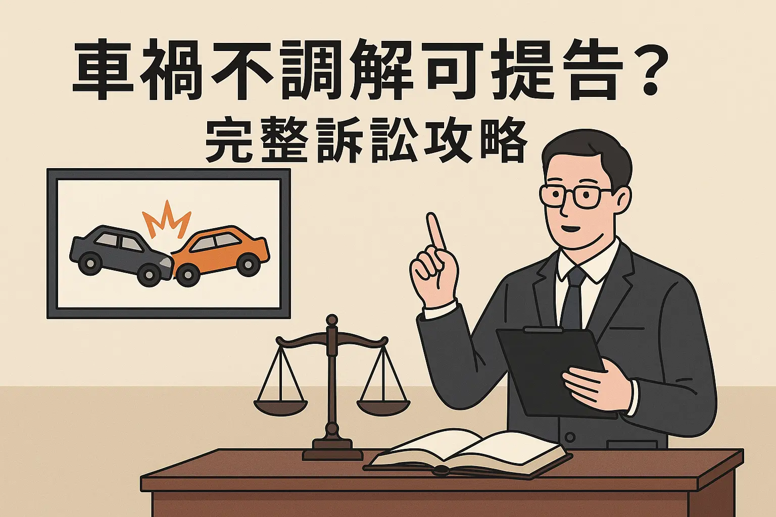 前言:發生車禍後,保險公司與警方常建議先「協商」或「鄉鎮市調解」,但若對方否認責任、態度消極,或您面臨酒駕、肇逃、嚴重傷害等情節,拖延不僅浪費時間,也可能錯失民事 2 年與刑事 6 個月的時效。本文完整解析「不調解直接提告」的法律依據、訴訟流程與賠償計算,協助您在最短時間內向法院主張權益。